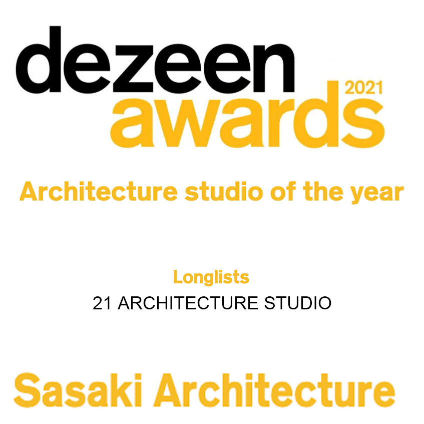 We (SASAKI ARCHITECTURE) have been selected as one of the BEST 21 LONGLIST of ARCHITECTURE STUDIO OF THE YEAR 2021 as DEZEEN AWARDS 2021 in the UK.