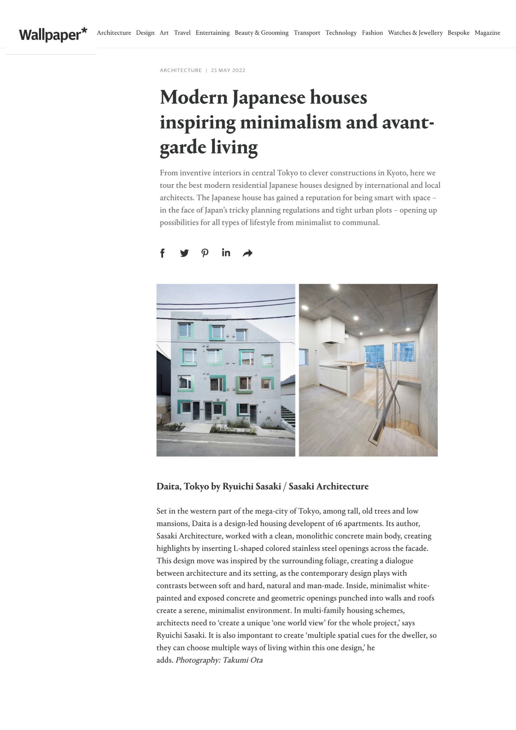 「DAITA」(集合住宅)がデザイン情報サイト「WALL PAPER*」に掲載されました。(イギリス)