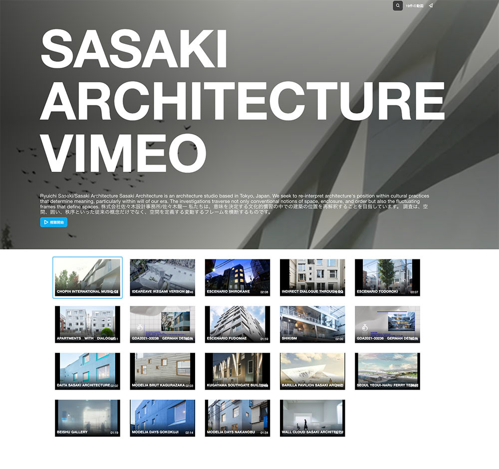 SASAKI ARCHITECTURE VIMEOを開設いたしました。