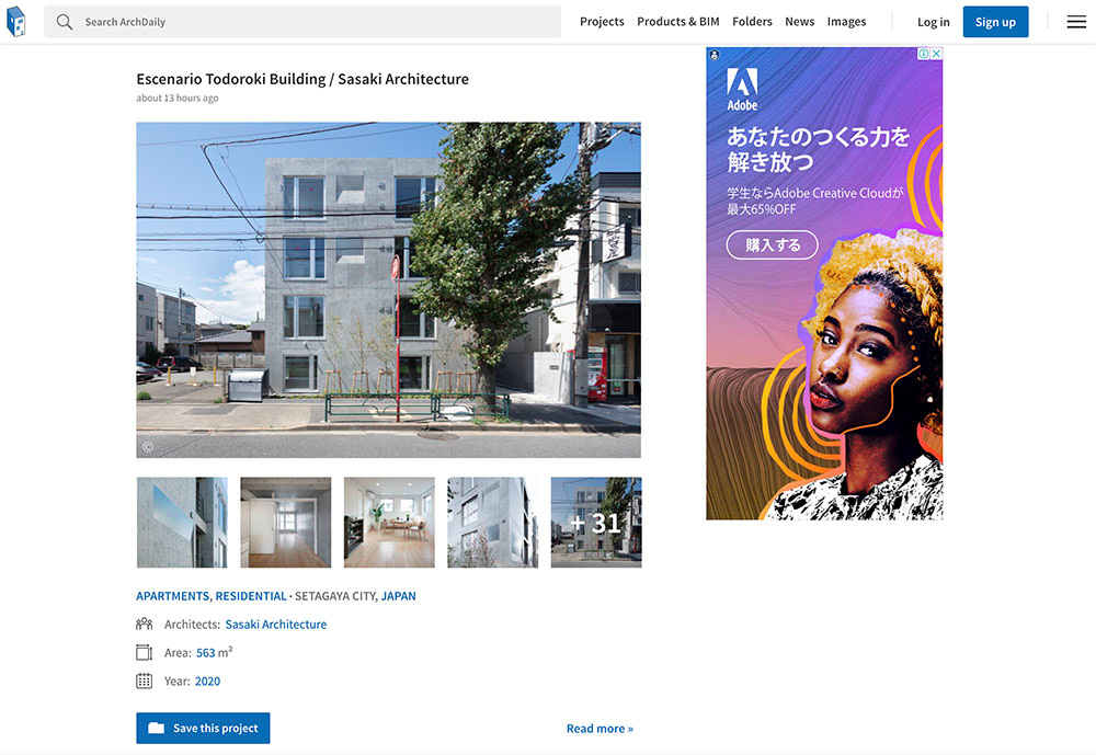 「ESCENARIO TODOROKI」が建築デザイン情報サイト「ARCHDAILY」に掲載されました。